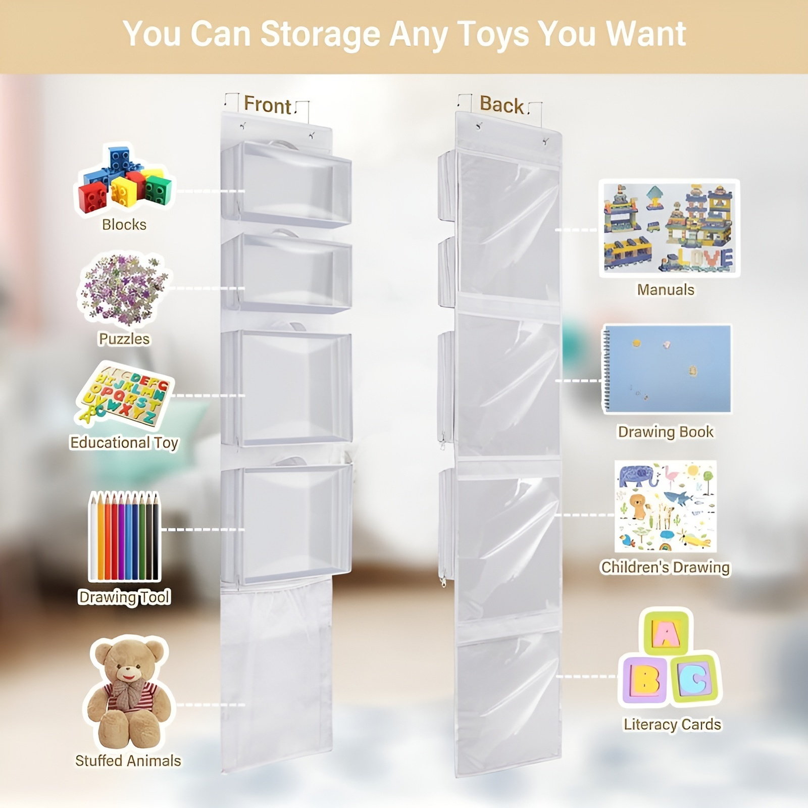 Hanging toy storage bag